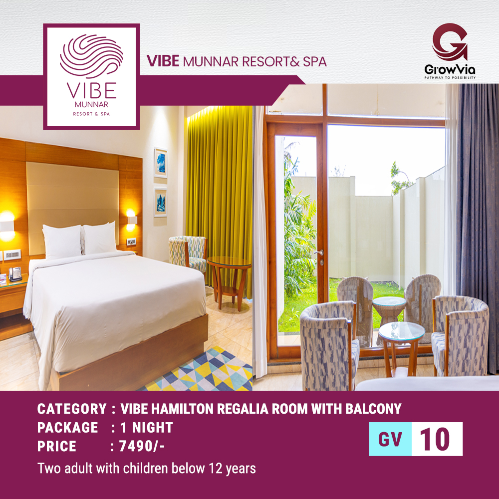 VIBE MUNNAR RESORT & SPA- 1 NIGHT (VIBE HAMILTON REGALIA ROOM WITH BALCONY)