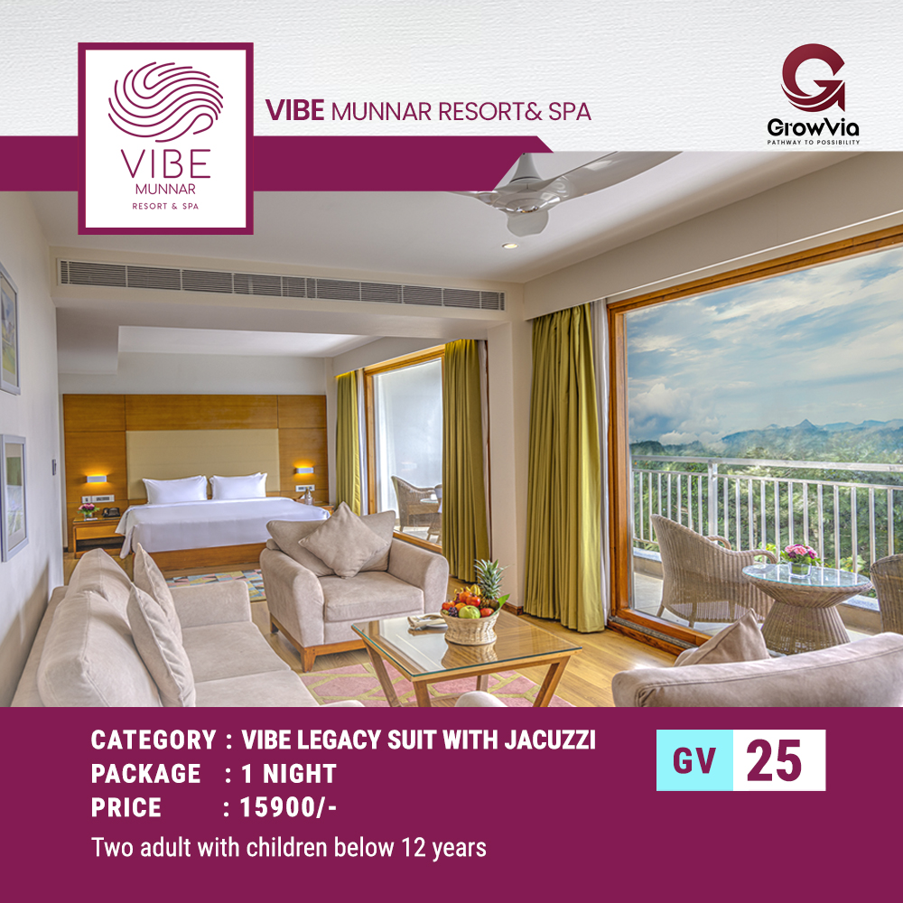 VIBE MUNNAR RESORT &SPA 1 NIGHT (VIBE LEGACY SUIT WITH JACUZZI)